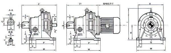 | B系列(機(jī)械部標(biāo)) | 12 | 15 | 18 | 22 | 27 | 30 | 33 | 39 | 45 | 55 | 65 | | X系列 | 2 | 3 | 4 | 5 | 6 | 7 | 8 | 9 | 10 | 11 | 12 | | B系列(上海標(biāo)) | B10 | B11 | B12 | B13 | B14 | B14A | B15 | B16 | B17 | B18 | B19 | | B系列(機(jī)械部標(biāo)) | 1812 | 2215 | 2715 | 3018 | 3322 | 3922 | 4527 | 5530 | 6533 | | X系列 | 42 | 53 | 63 | 74 | 84 | 95 | 106 | 117 | 128 | | B系列(上海標(biāo)) | B120A | B131A | B141A | B142A | B153A | BB163 | B174 | B184 | B195 | | 本公司其他產(chǎn)品介紹:1、生產(chǎn)JB型HG5-251-79 | | 2、生產(chǎn)與其他特殊動(dòng)力源相配套的法蘭聯(lián)接擺針輪減速機(jī) | 五、擺線針輪減速機(jī)外形及安裝尺寸1、BW、BWY外型及安裝尺寸 |